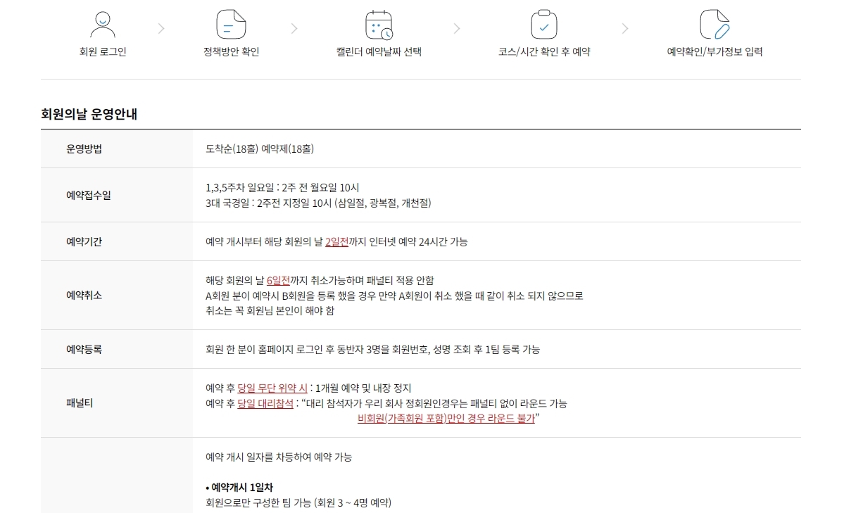 - 회원의날 : 1, 3, 5주 일요일 및 국경일