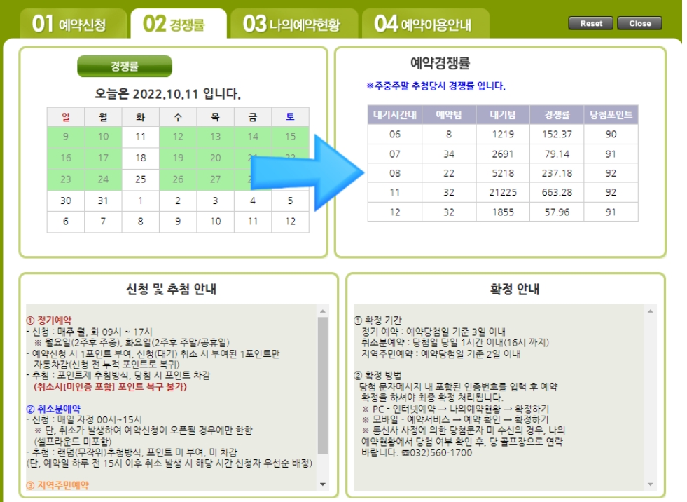 드림파크CC는 정기예약과 포인트 추첨제를 병행하며, 포인트가 높을수록 당첨 확률이 올라갑니다. 예약은 매주 월·화 오전 9시에 열리며, 오후 5시에 결과 발표됩니다.
